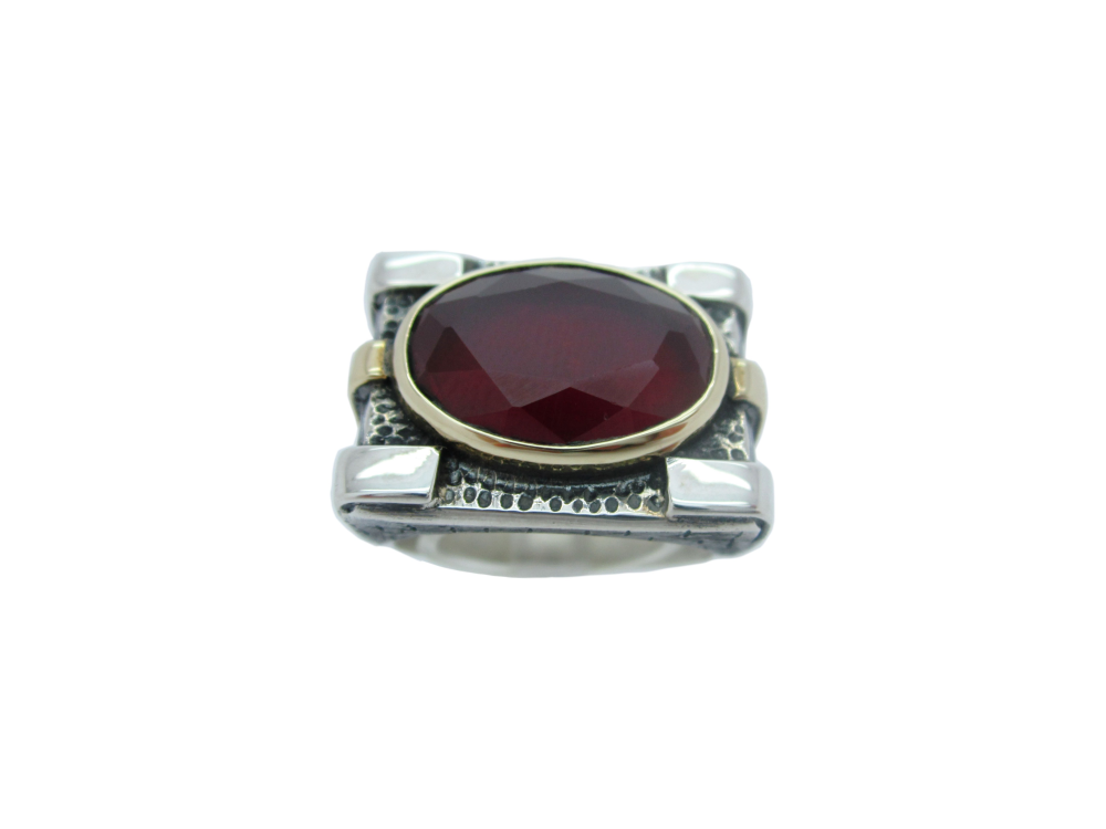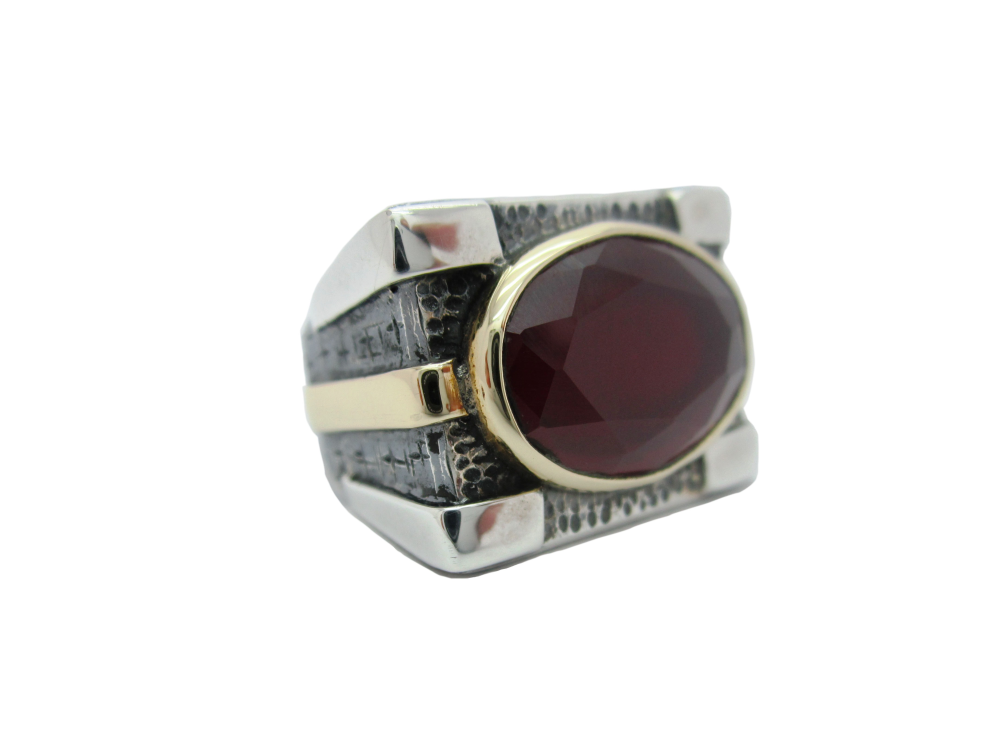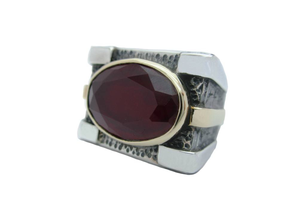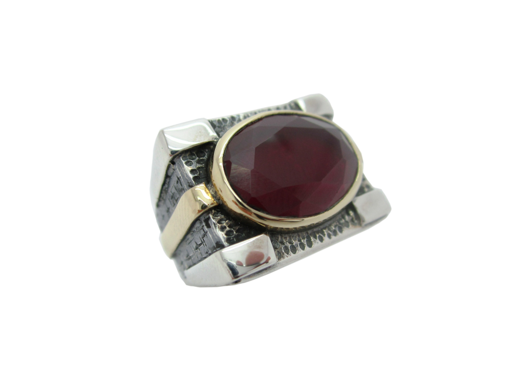 -Yakut taşlı , işleme kısımları bronz , 925 ayar gümüştür.