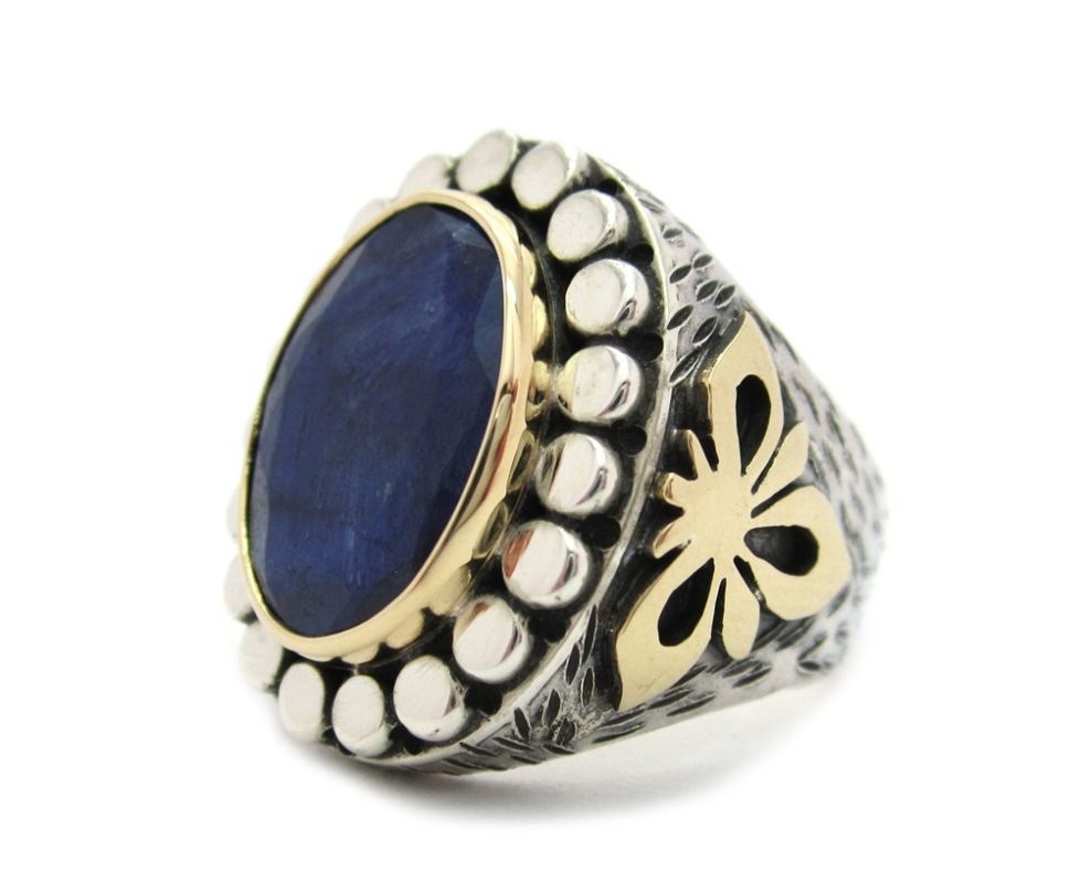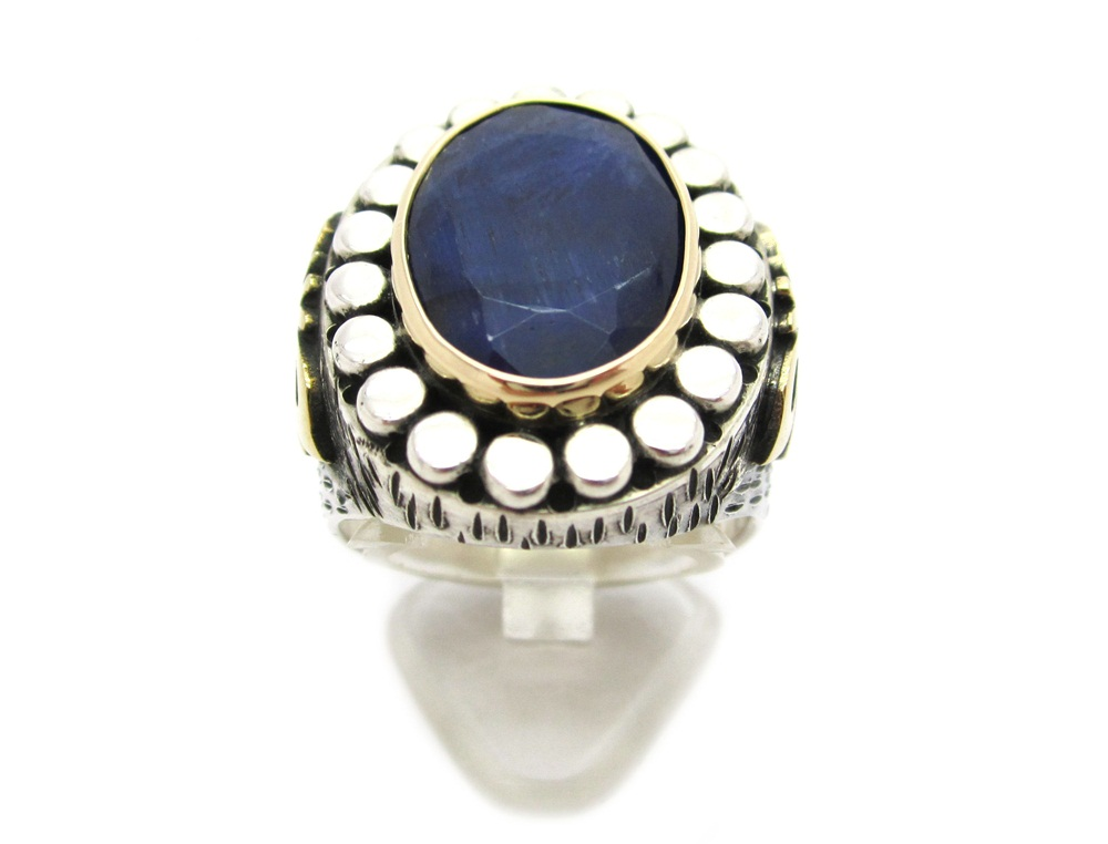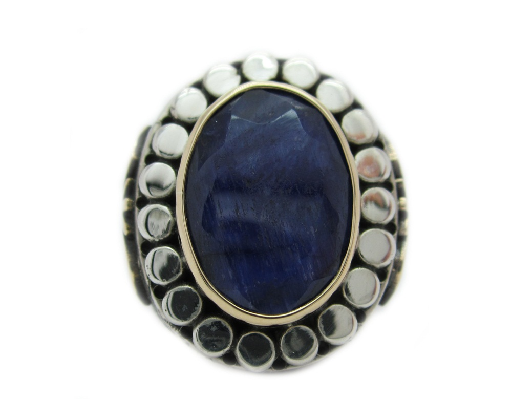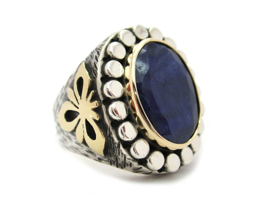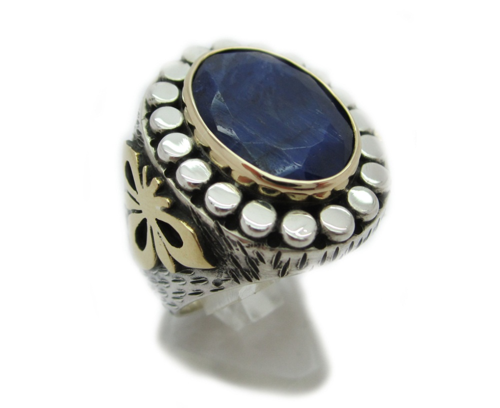 -Hakiki safir taşlı , işleme kısımları bronz , 925 ayar gümüştür.