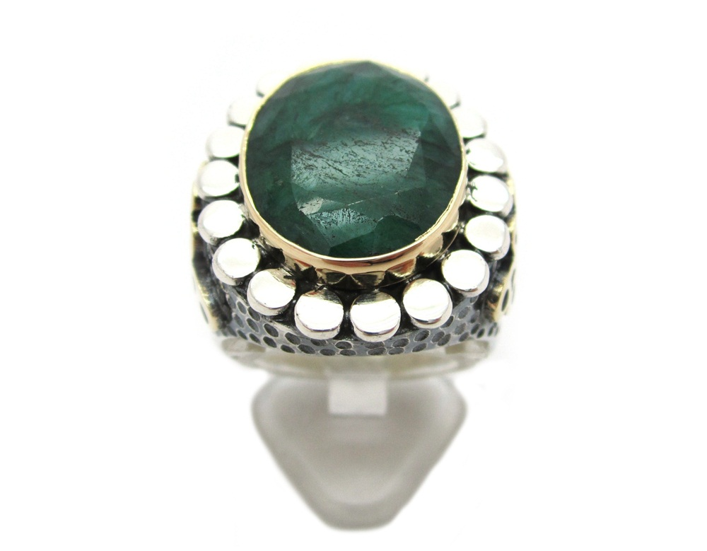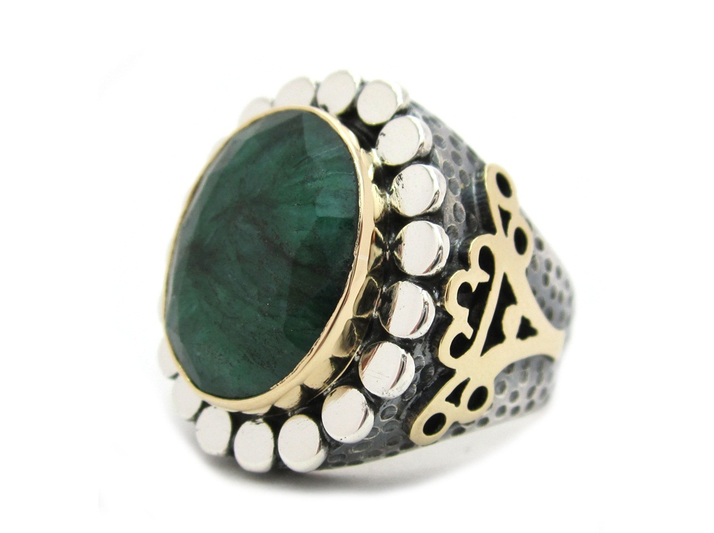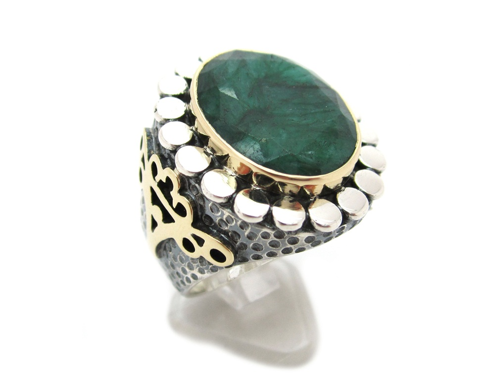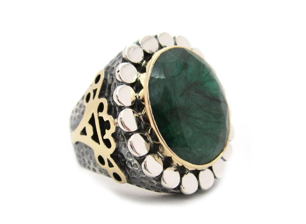 -Hakiki zümrüt taşlı , işleme kısımları bronz , 925 ayar gümüştür.