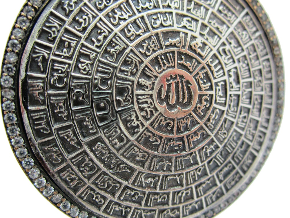 -Hakiki zirkon taşlı yuvarlak iri boy Esmaül Hüsna bayan kolye ucu.