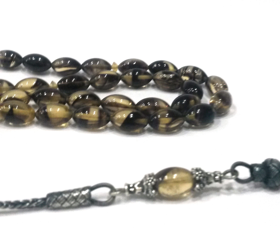 Duman hareli hakiki sıkma kehribar 33 lük tesbih. Püskül kısmı 1000 ayar trabzon kazaz kamçı kullanılmıştır.