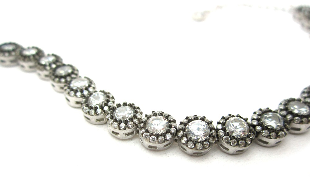 -Bileklik hem gümüşün kararmasını önlemek hemde eskitme elmas görünüm tarzını yakalamak için komple rodyum kaplanmıştır.