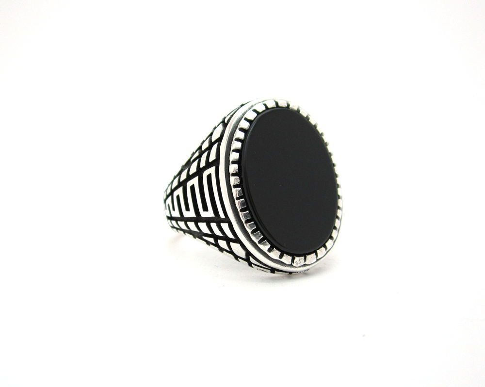-Oval formda düz kesim onix taş kullanılarak imal edilmiştir.